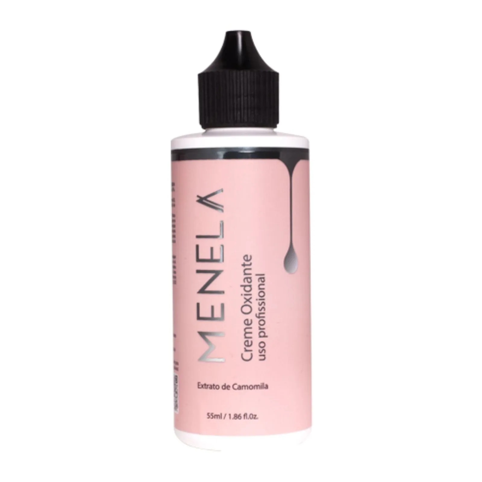 1º Prepare a mistura na proporção 1:1,50, utilizando 1 cm de Tintura Profissional Menela para 15 gotas de Creme Oxidante Menela até obter uma pasta cremosa e uniforme.